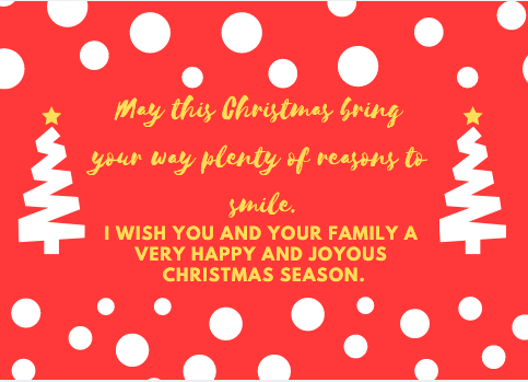 ❆ May the holiday season end the present year on a cheerful note and make way for a fresh and bright New Year. Merry Christmas to you and your family!