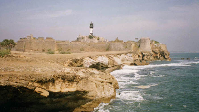 Fort of Diu was constructed between 1535 and 1541 AD after a defense alliance, concluded by the Bahadurshah, Sultan of Gujarat, and the Portuguese when the former was attacked by Humayun, the Mughal Emperor. On the Fort stands a giant structure now housing a Lighthouse. A couple of mounds of iron shells can be seen even today inside the fort.