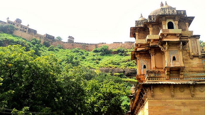 The fort has seen the rise and fall of several dynasties. According to a local legend, the fort was built in 3 CE by a local king named Suraj Sen. He was cured of leprosy when a sage named Gwalippa offered him water from the sacred pond, which is now located within the fort. The grateful king built a fort and named it after the sage. The sage conferred upon the king the title of Pal (“protector”) and told him that the fort would remain in the possession of his family as long as he would hold this title. 83 descendants of Suraj Sen Pal controlled the fort, but the 84th Teej Karan Naam lost it.