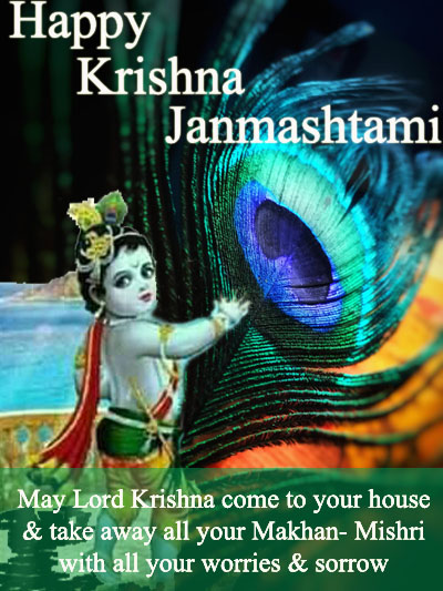 - “May Lord Krishna come to your house & take away all your Makhan- Mishri with all your worries & sorrow”.