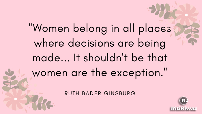 “Women belong in all places where decisions are being made… It shouldn’t be that women are the exception.” ― Ruth Bader Ginsburg, US Supreme Court Judge