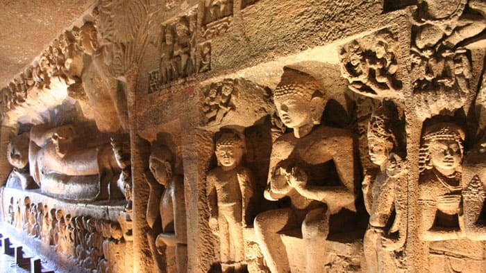 Ajanta has a group like a monastery, which has many viharas and chaityas, which are built in two stages. The first phase is mistakenly called the Hinayana phase, which is related to the Hinayana faith of Buddhism. In fact, Hinayana Sthal is a term for antisemitism, in which there is no prohibition in the tangible form of Buddha. Ajanta’s cave number 9,10, 12, 13 15 was discovered at this stage. In these excavations, Buddha is depicted as Stupa.