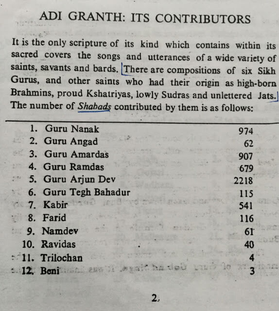Adi Granth and its contributors