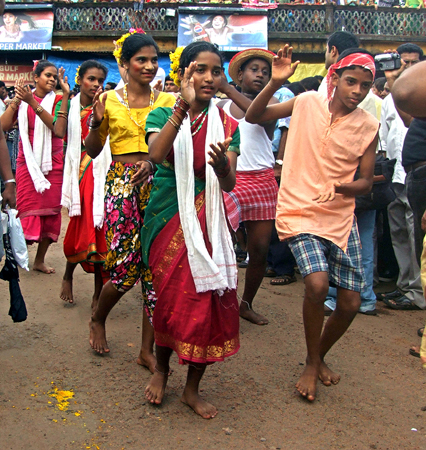 Men in tribal groups wear dhotis and headgears like cotton turbans. The fabrics used are linen, silk, and cotton and they are usually painted with molten wax. Their tie and dye technique used in fabrics is called Batik.